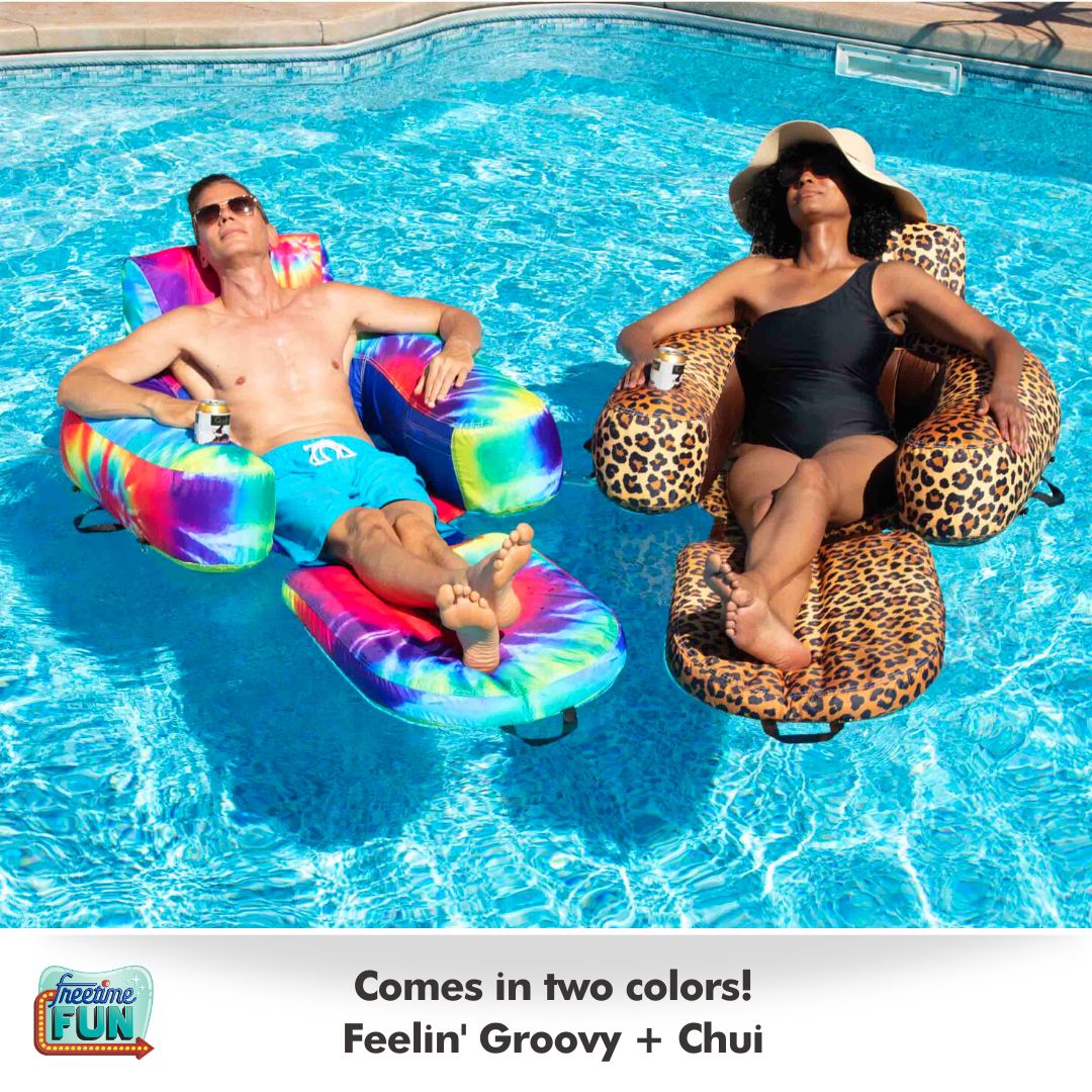 Relax the summer away with America's Finest Inflatables: Great looks, exceptional comfort with easy inflation/deflation. These beautiful floats will last and last. Available in Chui (Swahili for leopard), Feelin' Groovy (Tie Dye) and Desert Camo (Brown Camo). Sold exclusively by FreetimeFun.com Must be inflated with an electric pump. (NOT INCLUDED)